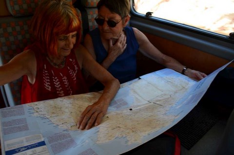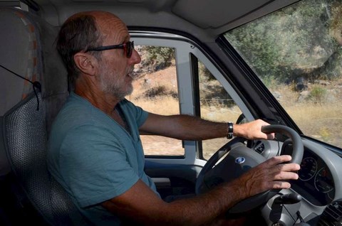 Mardi 20, on est partis sur Lesbos dans le camping car "neuf moche" ( sujet inépuisable), skippés par Hubert et routés par Françoise et Renée. Dans le couple "Renée/Hubert", il faut savoir que le seul sens de l'orientation potable, c'est elle !