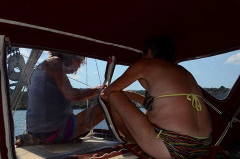 Françoise et moi, au speedy titcher, nous occupons de la capote !