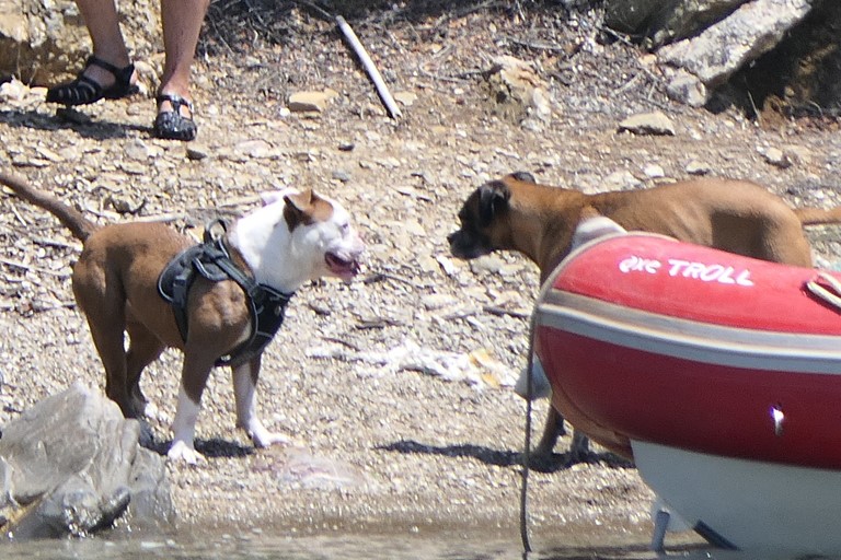 Et malheureusement, dans nos agapes incessantes de ces 15 derniers jours, nous avons été contraints de laisser une des chiennes sur le bateau qui ne recevait pas les convives du jour.
