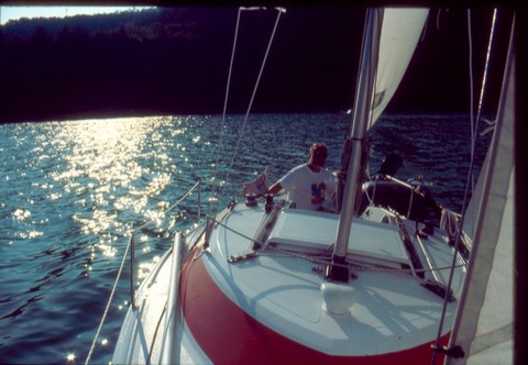 Nous avons navigué beaucoup en eau douce et un peu en eau de mer,beaucoup sur le lac de Vouglans, et puis en Bretagne en Méditerranée, en mer Egée....