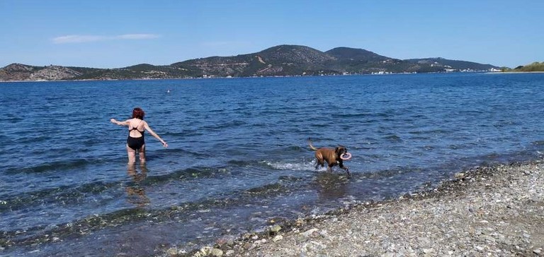 Première baignade de l'année pour Françoise, le 6 mai :