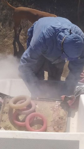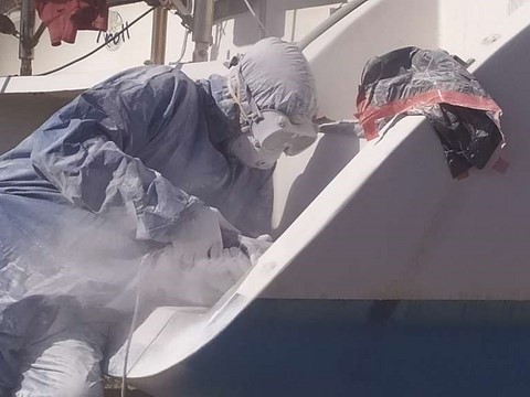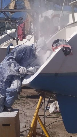 Le temps était au beau fixe ! Il permettait toutes sortes de travaux : Ponçage, reponçage, dépoussiérage, peinture, gel coat, stratification, etc !