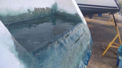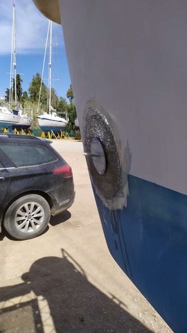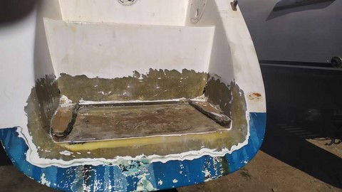 -Finition au gel coat de la jupe tribord terminée par Michaelis
