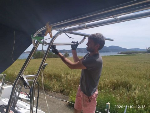Du coup, le 10 mai, "Inoxman" ou Adrian, de son vrai prénom, est venu avec tout le matos pour installer les bossoirs et le garde fou, soigneusement confectionnés pendant le confinement.