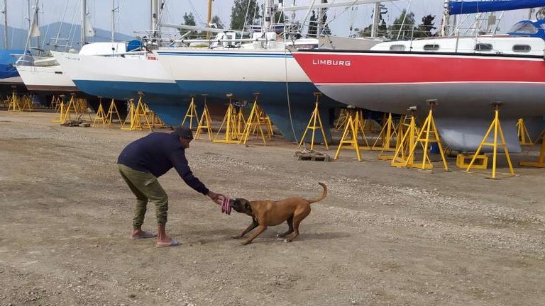 Ici, tout est fermé, comme chez vous ! Interdiction de mettre une bateau à l'eau avant la fin Avril ! Pauvre Vincent qui devait venir naviguer avec nous à partir du 19 !