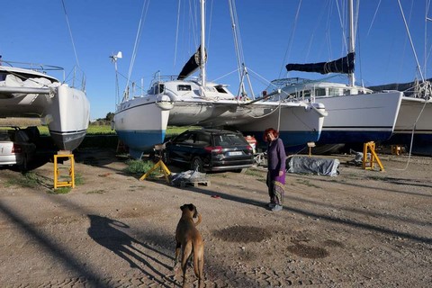 Après, je suis allé voir mon copain Luigi, le franco Italien qui occupe aussi son cata en ses temps curieux, histoire de voir s'il n'aurait pas un fond de vernis ! et comme il est super sympa, il m'en file ! Merci LUIGI !