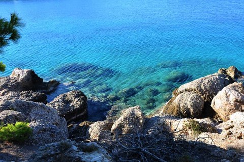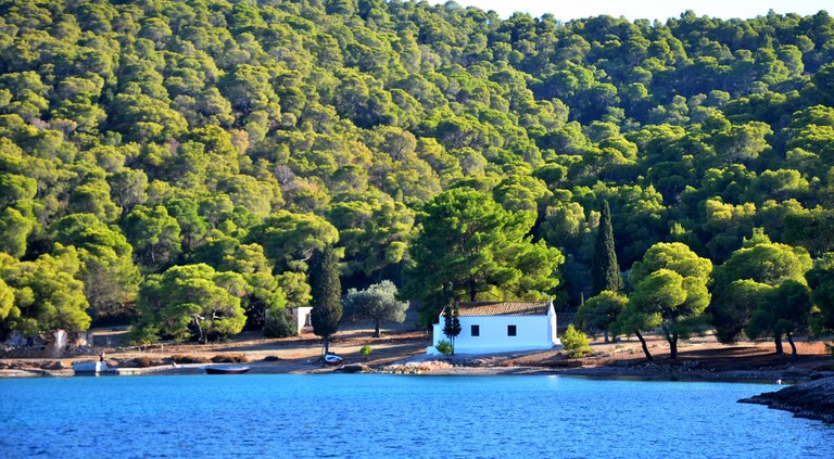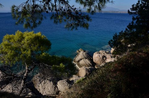 Donc, le 1er Octobre, nous voici à notre (grand) mouillage favori à Spteses. Le PIED, car, bourré à craquer en Aout et en septembre, nous y sommes seuls en ce début Octobre. Et ça, c'est vraiment le big foot intégral. De plus, l'eau est d'un bleu ! Et la température toujours au-dessus de 25° pendant que l'air dépasse les 30° en journée ! Le PANARD, je vous dis.