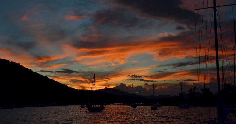 On n'a d'abord été seul dans notre micro baie. Puis est arrivé un gros cata français, sympa et précautionneux dans sa façon de mouiller, nous demandant position de notre ancre et longueur de chaine. Puis, est survenue une flotillas de catamaran... des gros . Et la micro baie est devenue les champs élysée un soir de victoire de coupe du monde (j'exagère à peine!) :