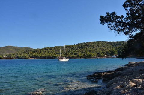 Quelques miles plus loin ( une douzaine), il y a un mouillage devant lequel nous sommes passés de bien nombreuses fois en se disant " un jour, faudra qu'on s'y arrête". Et ben c'est le moment.