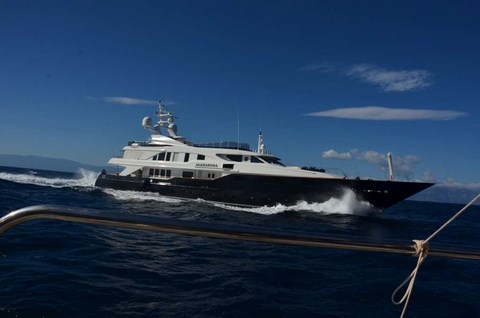 Mais, dès le franchissement du cap Korakas, c'est une nav' magnifique qui nous attend, largue, gran largue, puis vent arrière, avec des pointes au-delà de 8 noeuds:
