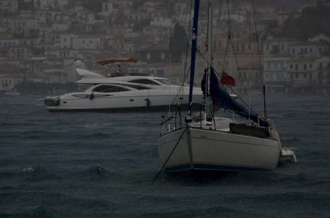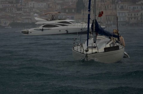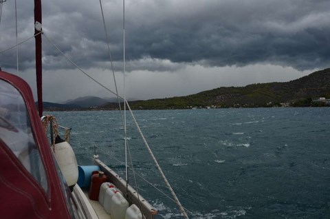 Y'a tellement de vent, que l'on décide de relâcher à Porto Chelli, histoire de faire le plein de la cambuse...et d'acheter du gasoil.