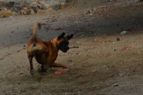 L'annexe est retournée. Le moteur, que j'ai changé cette après midi, baigne dans la mer !
