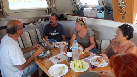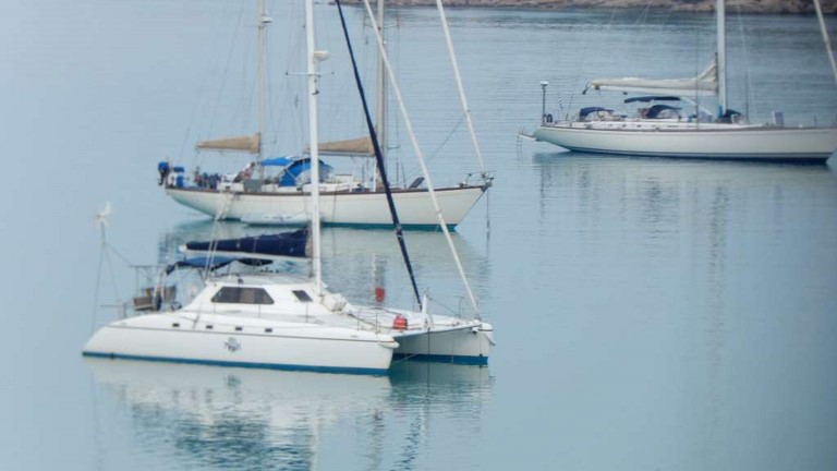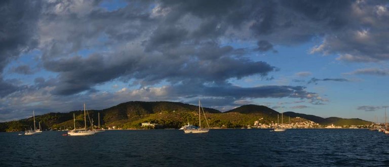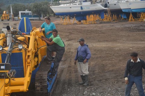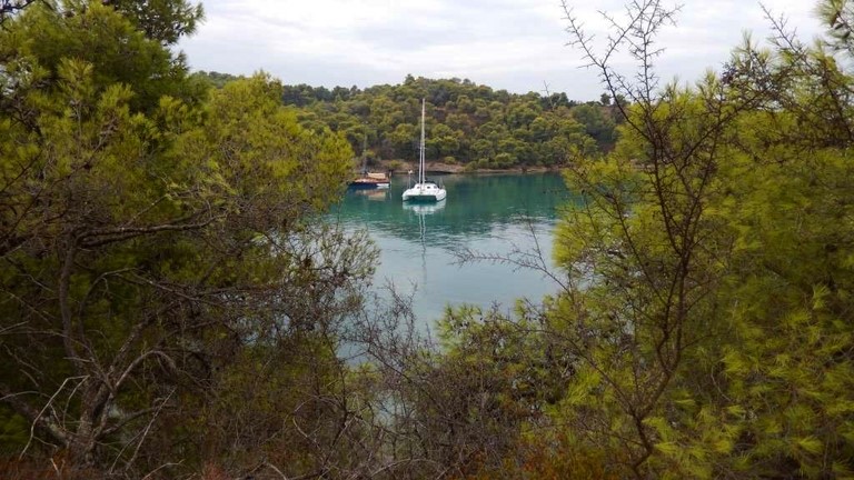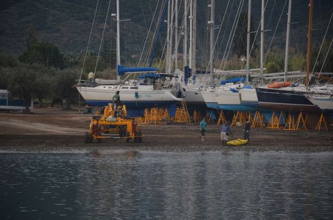 Et puis, l'impossibilité pour Françoise de se promener, le début des pluies diluviennes d'automne, le vent dans la baie, et l'envie d'avoir le temps avant de quitter la Grèce, nous ont décidés à demander à Daniela et Michaelis de sortir notre petit cata.