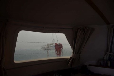 Là, on a passé quelques jours, bien planqués,,jusqu'au 17 septembre, en fait, en raison de très grands vents, avec la mer qui fume, parfois :