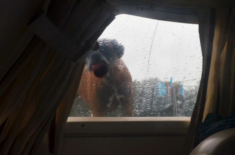Moteur noyé. Il ne pouvait plus sortir le chien.