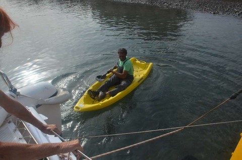 Alors, je l'ai remorqué à terre avec la mienne et avec ce vent, c'est dommage que je n'ai pas eu l'appareil photo pour vous en rendre compte ! Ce fut....hmmmm.... humide !