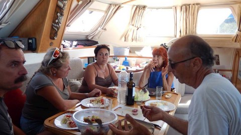 on a eu celle de Claude, Osthéopathe, acupuncteur et adepte du zen, qui navigue à bord d'un très viel AMEL. Super sympa le Claude. Il s'est occupé de fRançoise comme il a pu! Hélas, le résultat sur la douleur aux articulations n'a pas vraiment porté ses fruits. En revanche, Françoise a passé un super moment, entre d'autres mains que les miennes :