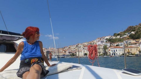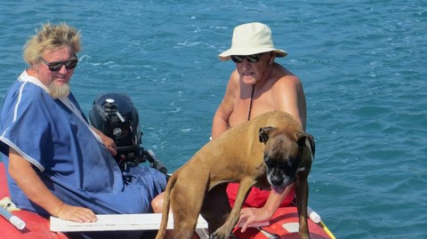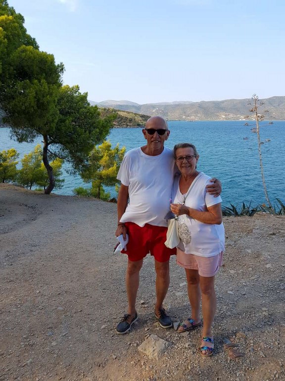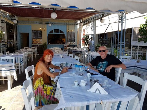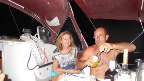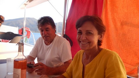 Le ferry en provenance du Pirée vient d'accoster à Poros, et, dégoulinants et épuisés, puisqu'il a fallu qu'ils courrent comme des dingues, valises pleines, et qu'ils supplient la Dame qui venait de retirer la passerelle de les laisser embarquer, voici Laure et Francis, qui viennent passer 10 jours avec nous.