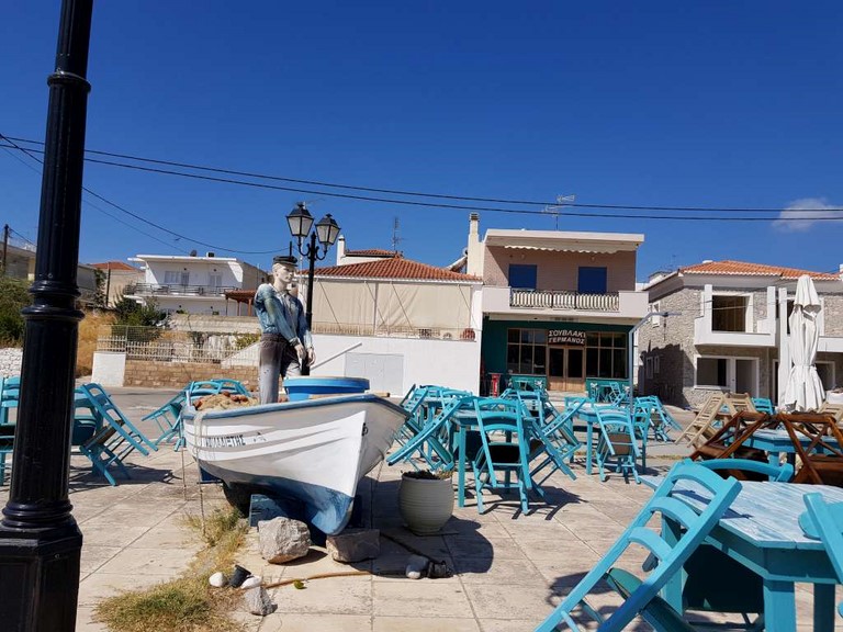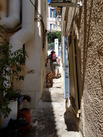 La fin du séjour des amis de Salernes s'approchant, et le vent annoncé se rélélant fort violent, nous partons nous réfugier à Kiladha, d'où nos amis prendrons le taxi pour rejoindre Poros, le Pirée, l'avion, Marseille...et Salernes !