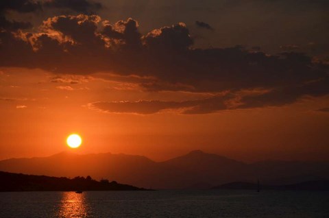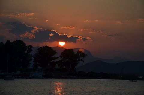 Du coup, on mouille dans la deuxième baie à Bâbord dans l'entrée de Porto-Helli. petit Paradis où nous serons seuls pour la nuit. Hélas, de 16 heures à 20heures, ce sont plus de..je sais pas moi, 300, 500 bateaux de toutes natures, qui passeront juste derrière nous, rendant ce mouillage, apparement calme, assez inconfortable jusqu'au coucher du soleil. Mais c'était bien quand même: