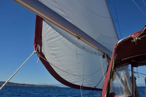 Le vent n'est pas favorable à rejoindre Spetses, ce qui était notre intention. En revanche, on a presque tout fait à la voile.