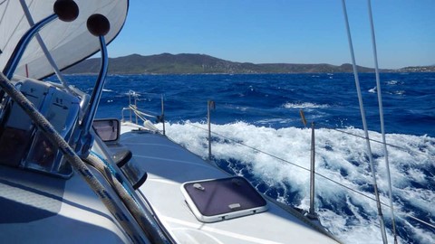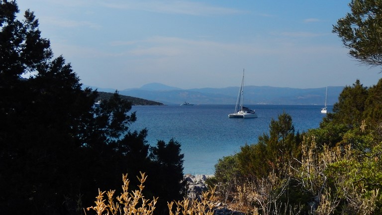 Et puis, le 15, alors qu'il y a environ 157 bateaux au mouillage à Porquerolle, et 452 entre les iles de Lérins, on a mis le cap sur Dokhos où il y aura peut-être bien foule aussi. C'est le 15 aout, quand même !