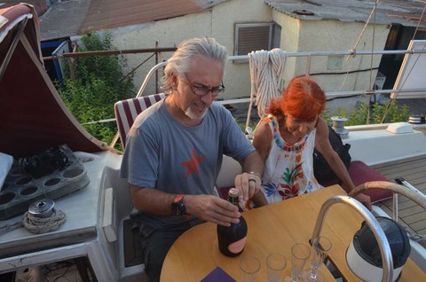 Ca se termine souvent, aprés les présentations d'usage, par un apéro dinatoîre sur un bateau où un autre, comme avec Martine et Bernard, sur leur très joli 43 pieds