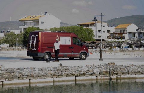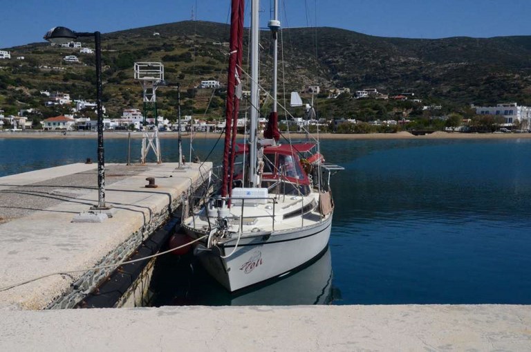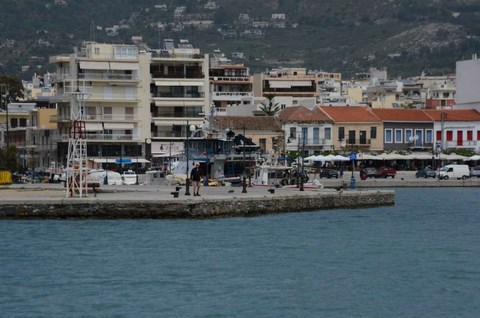 Alors, à quai, il y a Yannis et sa Twingo ! Yannis surveille le port. La mairie lui a laissé cette charge de façon officieuse. Du coup, il est là, tel un "omerggiatori" Grec, avec son gilet jaune, pour vous prendre les amarres...Et un "petit quelque chose" à discrétion. Pour nous, ce fut 5€... Pour 3 nuits, y'a rien à dire, n'est ce pas ?