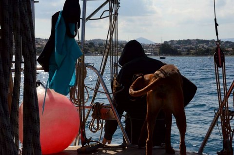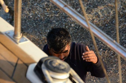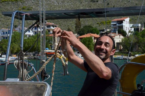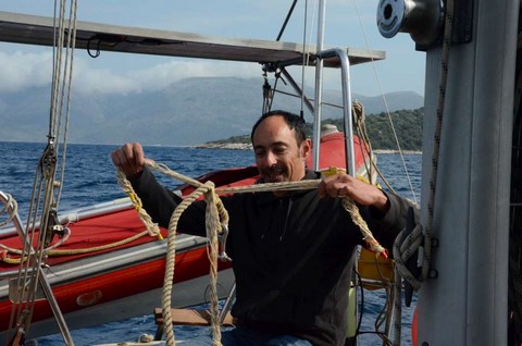 Donc, il fait grand beau pour la nav' entre Almyropotamos et Porto Rafti. Et l'appétit et e moral sont au beau fixe! Pendant la nav', Thierry est venu à bout de son épissure et vous constaterez, à la dernière photo du carrousel ci-dessous, qu'elle est tout bonement MAGNIFIQUE