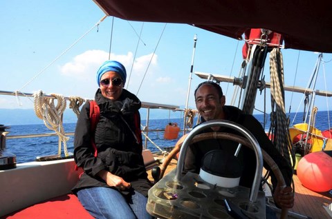 Le bateau étant brutalement tout vide, et pour continuer en amitié cette folle semaine, nous avons filé, toutes voiles dehors, rejoindre l'ami Roland à Karystos. Le projet, c'était d'être ensemble pour ne rien louper des derniers jours de la campagne et de l'élection.