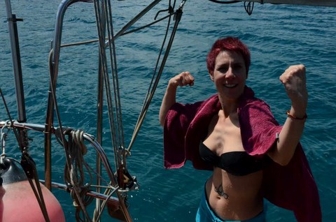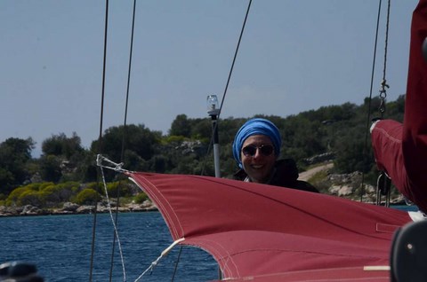 Aprsè 22 milles, nous voici donc à l'entrée de la baie de Voufalo. C'est toujours aussi sympa et du goût de Marion, dont le sourire en témoigne: