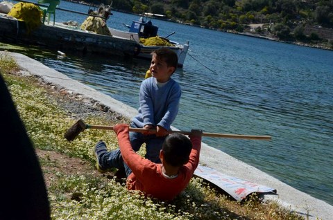 La réponse ne tarde pas : "Non, c'est Pâques ! Mais, si vous voulez de l'agneau pascal, revenez dans deux heures, vous êts nos invités ! Bienvenue à Porto Voufalo, mes amis!"
