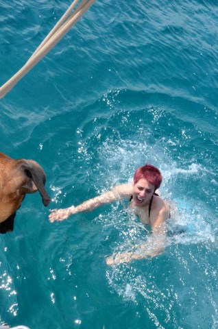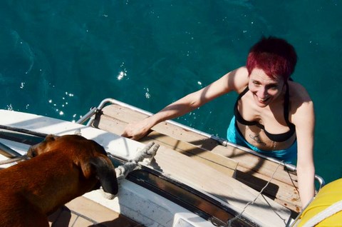 C'était bien joyeux, au point que j'ai eu beaucoup de mal à redescendre l'échelle du Sherpa pour rejoindre la caravane lors de l'apéro chez eux, la faute à 4 ouzos trop bien tassés! Le moins que l'on puisse dire, c'est que Javotte a eu son content de caresses: