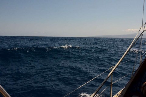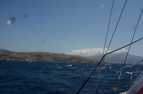 On avait été prévenus: Oui, on savait que le passage entre Karistos et Andros allait être sportif, la faute au conflit " courant contre vagues". On sait aussi que, le lendemain, cela aurait été plus cool. Mais le besoin de changer d'air était plus fort.