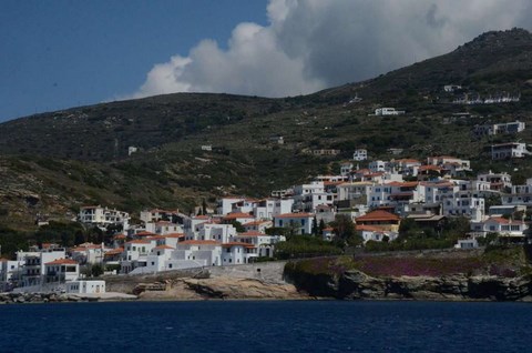 Depuis, nous avons encore bougé. Nous sommes sur Andros, depuis Lundi après midi, au pied du joli village de Batsi. la nav' a été sauvage!