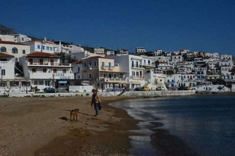 Je vous laisse retourner à l'acceuil sur cette photo de Javotte quittant son bord dans le port de Chalkoutsi.