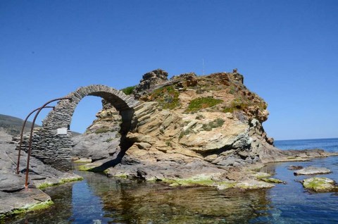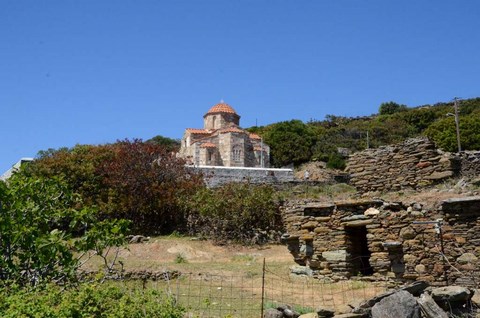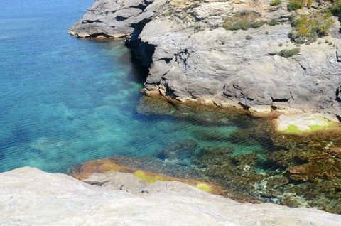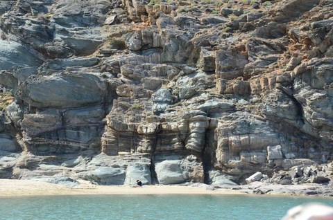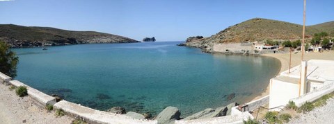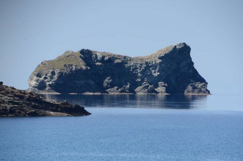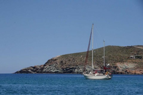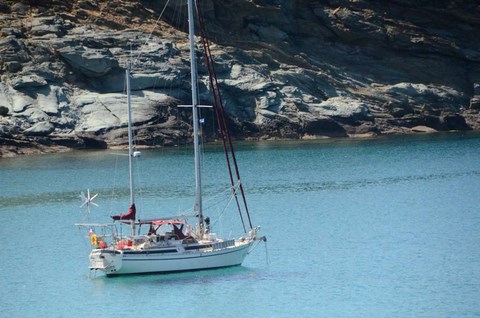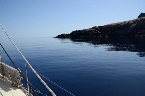 Jeudi matin, on a rendu l'auto et on est partis sur Tinos, découvrir un mouillage jamais pratiqué par nous auparavant. Il faut dire qu'il est ouvert au Nord et qu'on profite lâchement du petit sud pour in vestir ce bel endroit. La nav' se fait sur une mer d'huile, tout au moteur, faute d'un moindre souffle de vent. Mais le mouillage fut une belle récompense: