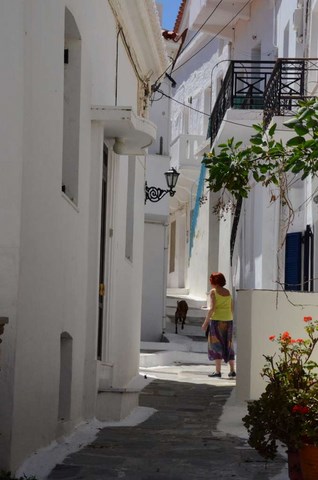 Rien de mieux, pour se changer les idées que de changer d'île. Alors, ce Lundi matin, cap sur Andros et le "recommandé par Matins bleus" petit port de Batsi.