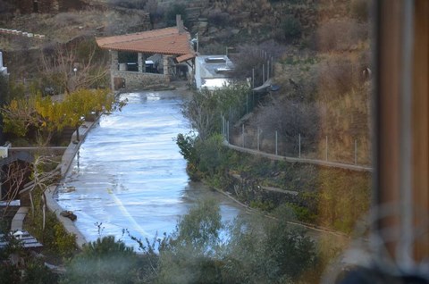 Du coup, météo pourrie ou pas, Corbi nous a emmené (en 1ère classe) jusqu'à chez Roland. Là-bas, à Karystos, ce sont de véritables trombes d'eau. Visiblement, le père Noël a tiré la chasse ! Et comme Karystos est au pied de la montagne, ça dégouline en torrent un peu partout!
