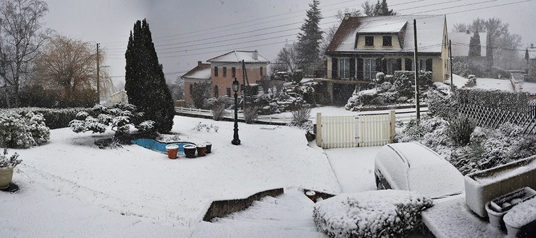 Cette semaine, ce fut l'Auvergne en famille, papa/maman, Frangine et beaufrère, nièces et neveux...amis aussi. De coinches en concert de trompette, nous fûmes en mesure d'apprécier Corbi chaussée ses "michelin cross climate" plaqué or, car nous roulâmes parfois sous la neige (oui, je trouve que l'emploi du passé simple se fait trop rare). Le jardin de mes chers parents :