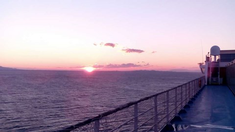 Les 24 heures qui vont suivre seront fort douces, puisque, croisant désormais en limousine de luxe, il n'était pas question de naviguer comme des bouseux, oh que non ! Aussi, nous avions, pour la première fois, pris une cabine, ce qui a transformé notre habituel calvaire en Adriatique en villégiature confortable. Génial. Plus jamais on ne fera autrement , sauf catastrophe financière grave!