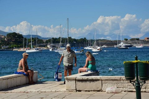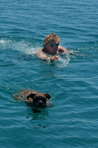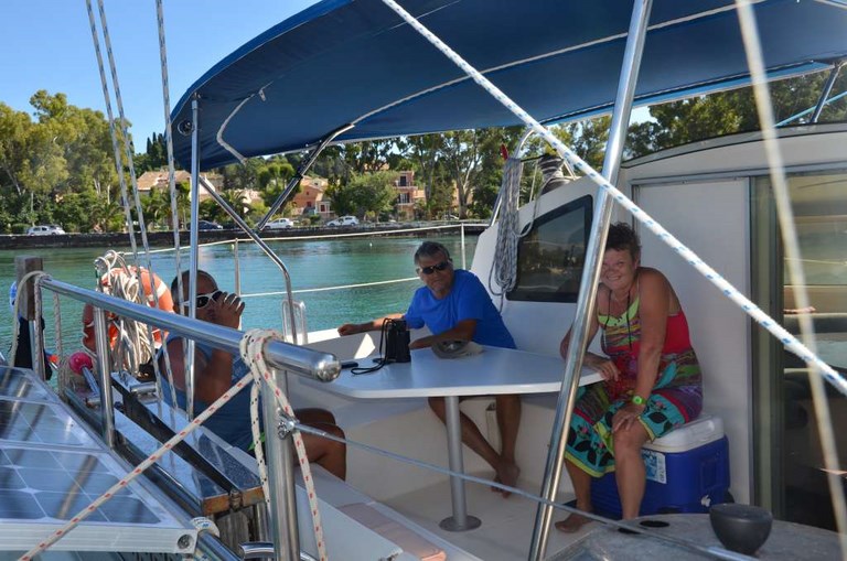 Lundi 13 juin : il re-fait beau ! Youpi ! Le bateau est tout propre. Il est temps d'aller retrouver nos amis de DEBER en baie de Corfou.