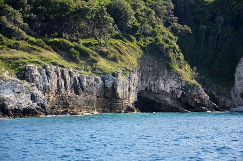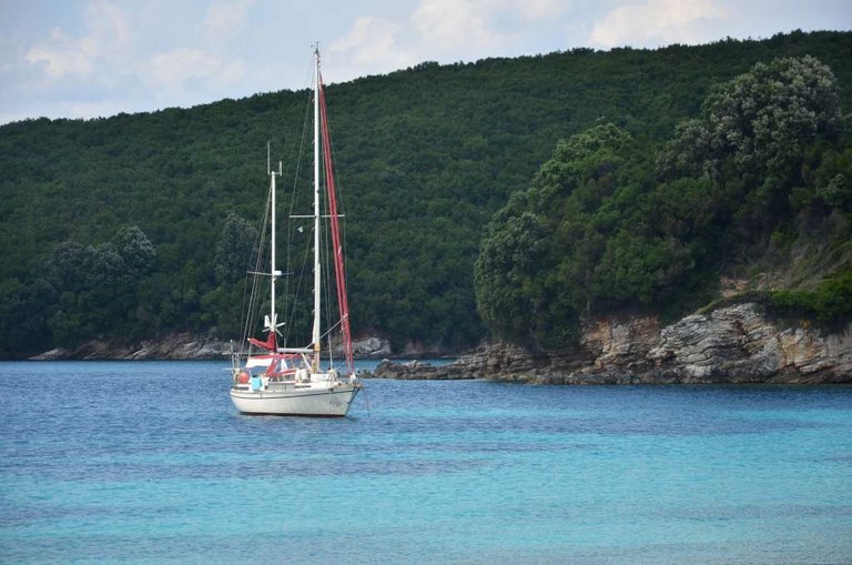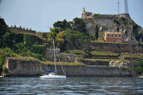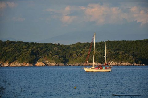 mardi 7 juin : La météo change! Le vent va passer au Sud ! Du coup, changement de programme, alors qu'on devait desendre doucement vers Prévéza, décision est prise par le capitaine, c'est à dire, moi, votre serviteur, de remonter sur le Nord de Corfou! On en profite pour aller visiter un mouillage de nous inconnu, ormos Valtou. Hélas, le vent est aux abonnés absents et c'est le moteur qui préside à notre déplacement.