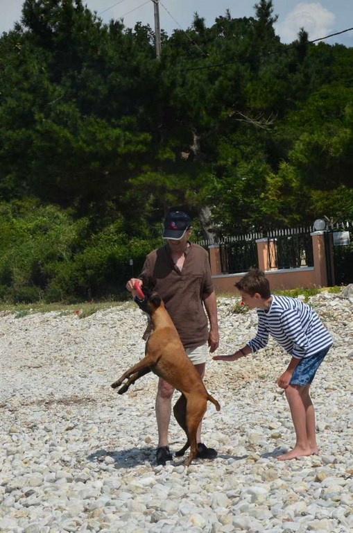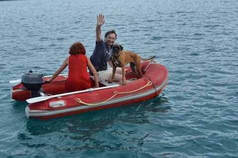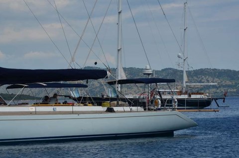 Le lendemain, 27 juin, Mauro est venu nous rejoindre car ce soir, nous l'emmenons au ferry à Igoumenitsa avec son campin car. On en profite pour le présenter aux Freya. Mauro est super content de rencontrer ceux qui lui ont donné un guindeau!