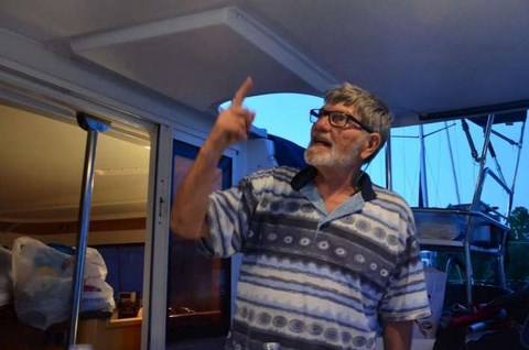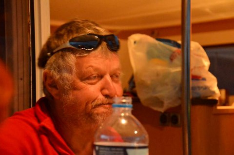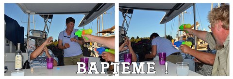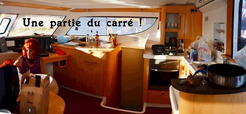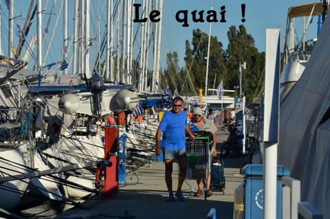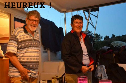 On se souviendra longtemps de la longueur du quai menant de la Volvo au bateau , ce qui nous a permis de goûter pleinement au repas du soir, où nous étions tous fourbus mais tellement heureux, particulièrement les deux nouveaux catamarreux, comme vous allez pouvoir le constater dans les photos d'ambiance qui vont suivre. Il faut dire qu'un nouveau bateau, dans une vie, ça compte grave!