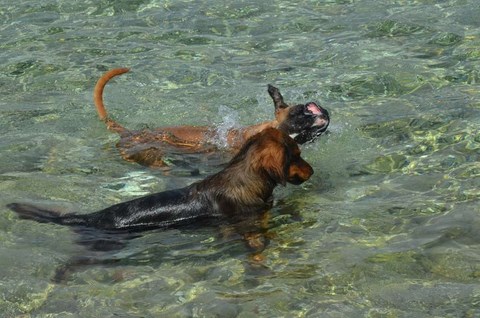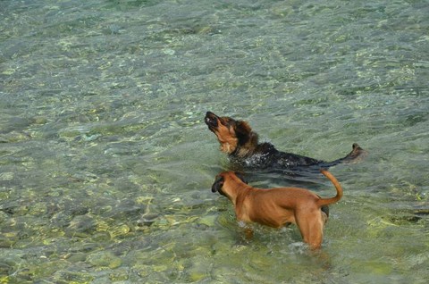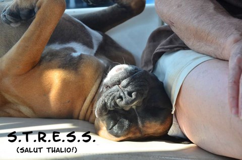 On en est là. Les analyses de Javotte ont révélé des bactéries dans son urine qui pourraient bien expliquer ses petits pipis de la nuit. Pour ma part, je suis sceptique (le véto était super cher!) et je me demande si tout cela n'est pas du flan...bref, petit traitement aintibiotique ( 50€ les deux boites d'antibio! Ben voyons! Décidément, je préfère la mer Egée, y compris pour ses vétos !)