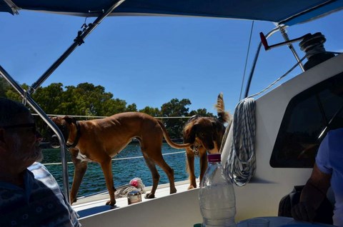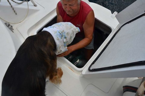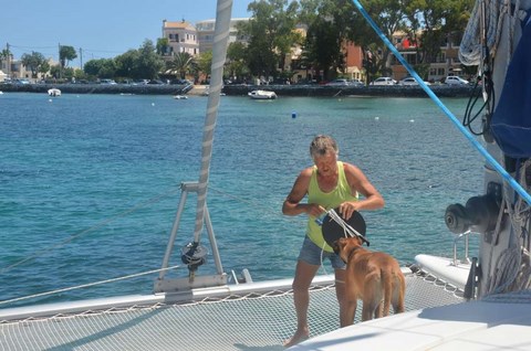 23 juin : Pas beaucoup de vent pour aller à Prévéza. Impossible de crocher devant les chantiers. Pas assez de place. Du coup, on va, comme d'hab' au mouillage du port de pèche. Puis, aussitôt, on emmène Javotte chez le vétro pour vaccinations annuelles ( et pour parler d'un petit problème d'incontinence qui dure depuis un bon moment!)