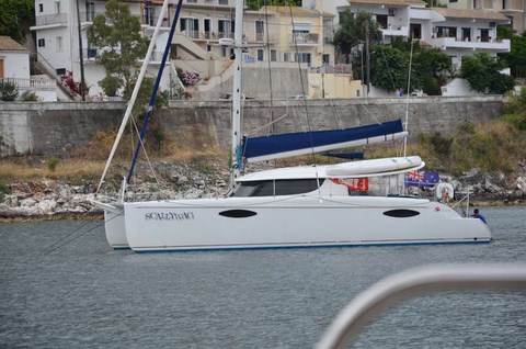Mardi 28 juin : on revient du chantier où nous sommes allés garer le camping car quand je me mets à l'arrêt ( Je l'avoue. C'est assez peu spectaculaire ! Et Javotte le fait mieux que moi!) Un Oceanis 42cc au quai de Prévéza ! Oui, c'est eux ! C'est Fredom !