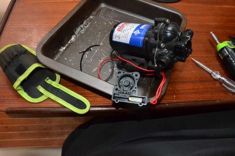 Une petite inspection du moteur de Troll par Gilbert, histoire de partir rassénérés par l'état sans problème du berlingot, et nous voilà en nav'.