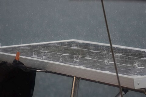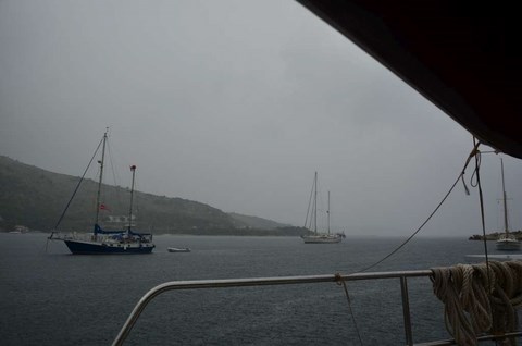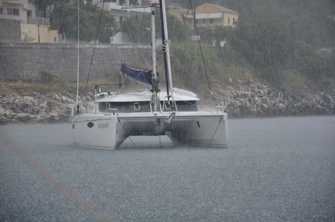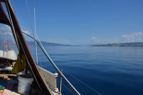 Nous voici donc en route pour Agios Stefanos, vanté par nos amis de DEBER. L'Albanie à Triibord, Corfou à bâbord, les conditions météo sont épouvantables et la mer particulièrement déchaînée :